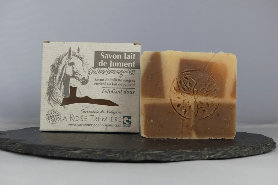 Parfumé aux huiles essentielles de cèdre et de lemongrass, notre savon au lait de jument offre une senteur fraîche et légèrement boisée, pour un moment de soin authentique au quotidien.