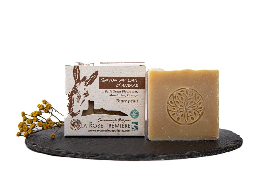 Savon artisanal surgras, fabriqué par saponification à froid, enrichi au lait d’ânesse frais pour nourrir, assouplir et tonifier la peau.