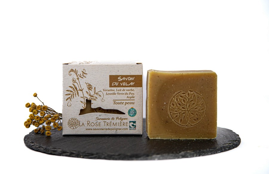 Formulé à partir d'ingrédients locaux de Haute-Loire, notre savon artisanal enrichi au lait de vache, farine de lentilles du Puy-en-Velay et argile verte allie exfoliation délicate, fraîcheur tonique et nutrition dans un savon 100% authentique. Sa formule douce nettoie la peau tout en la laissant fraîche et hydratée. Son parfum léger de verveine apporte une agréable sensation de fraîcheur au quotidien.